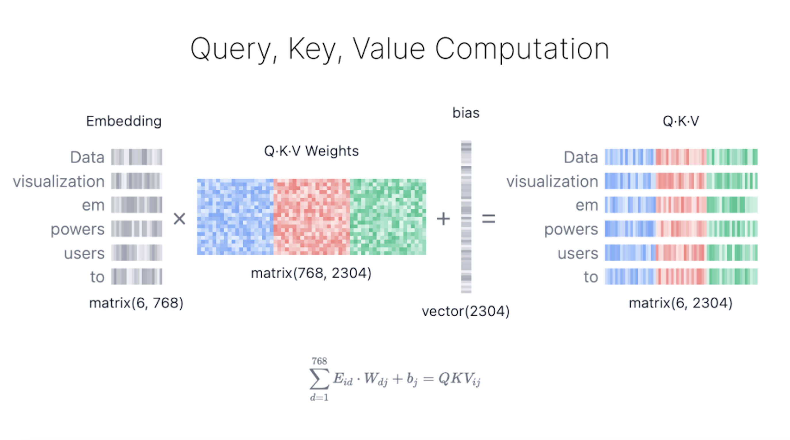 これらの QKV 値を使用することで、モデルは注目度スコアを計算し、予測を生成する際に各トークンにどの程度の焦点を当てるかを決定します。